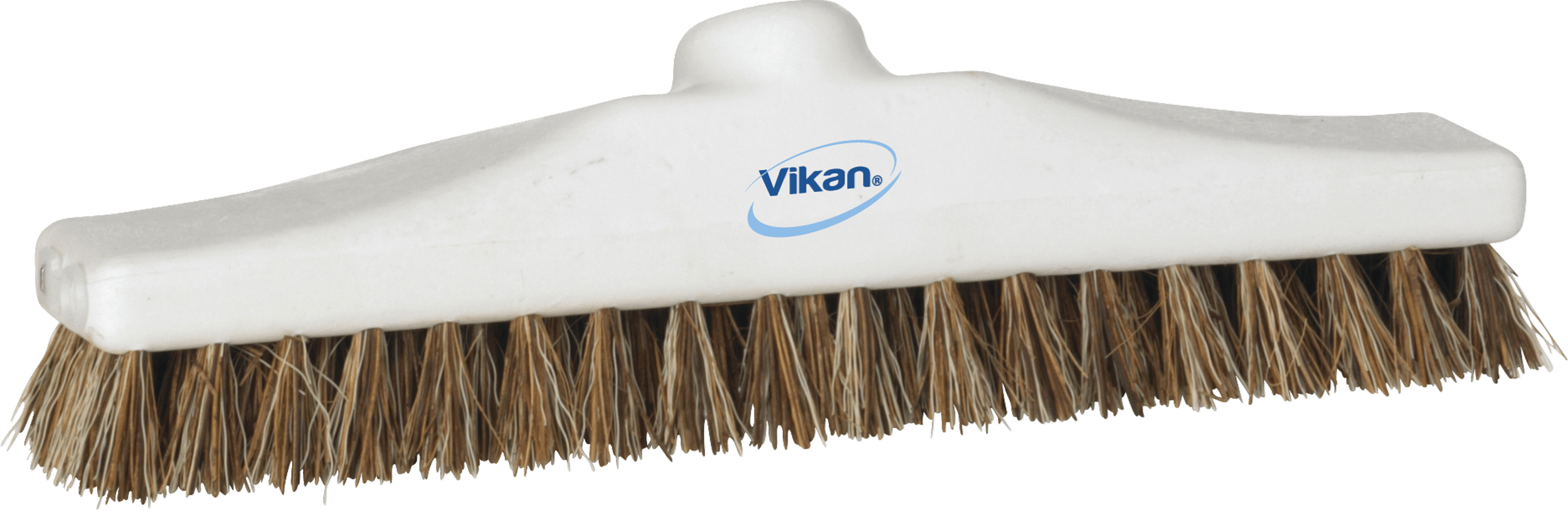 Indendørs gulvskrubbe (300 mm) i hvid skumplast med stive union-børstehår. Passer til alle Vikans skafter med gevind. Gulvskrubber